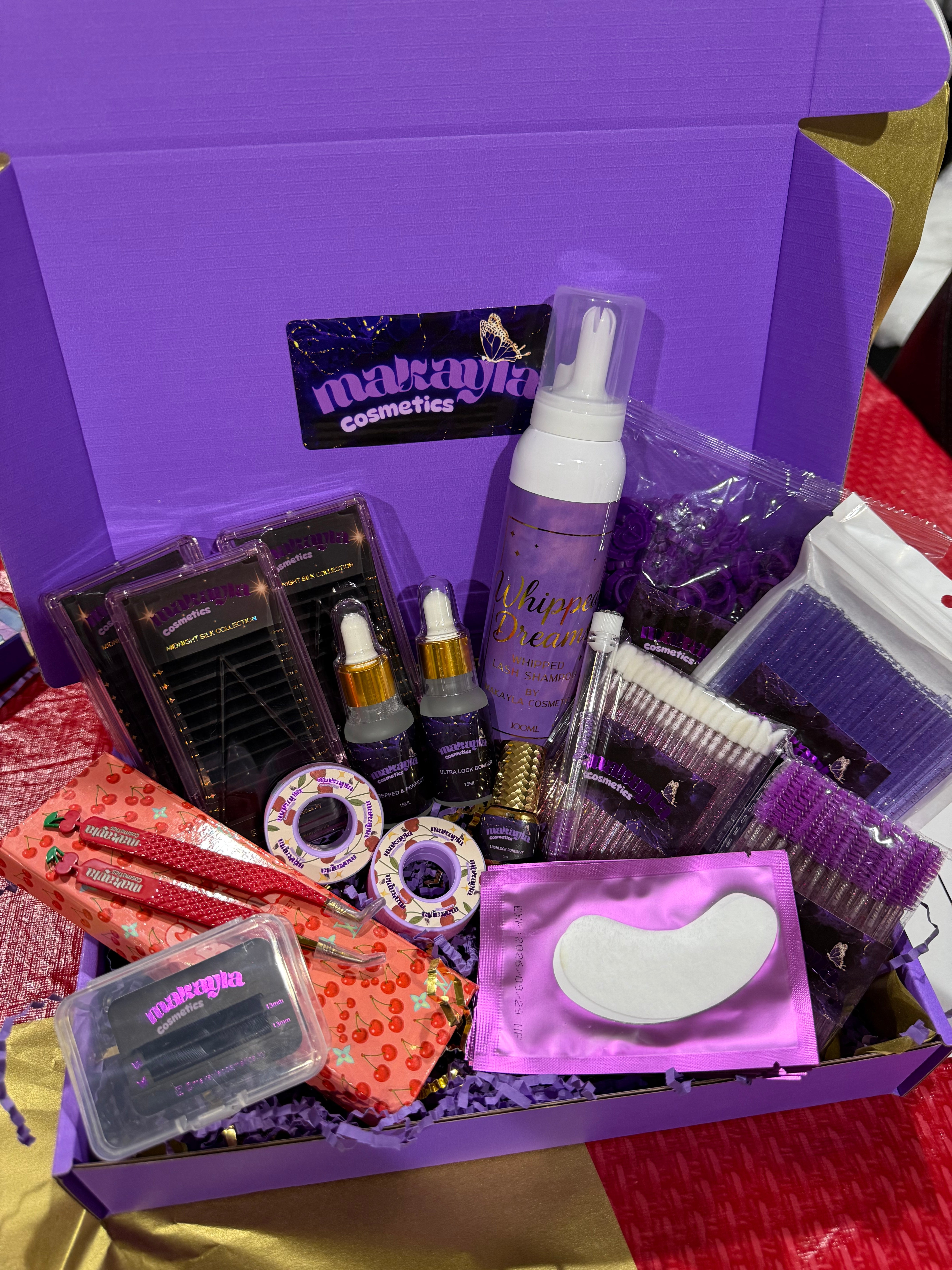 VALUED AT $250 includes: primer Bonder glue tweezers3 lash trays2 tape glue rings mascara wandsmicrofiber wands (for primer) lipstick applicators...