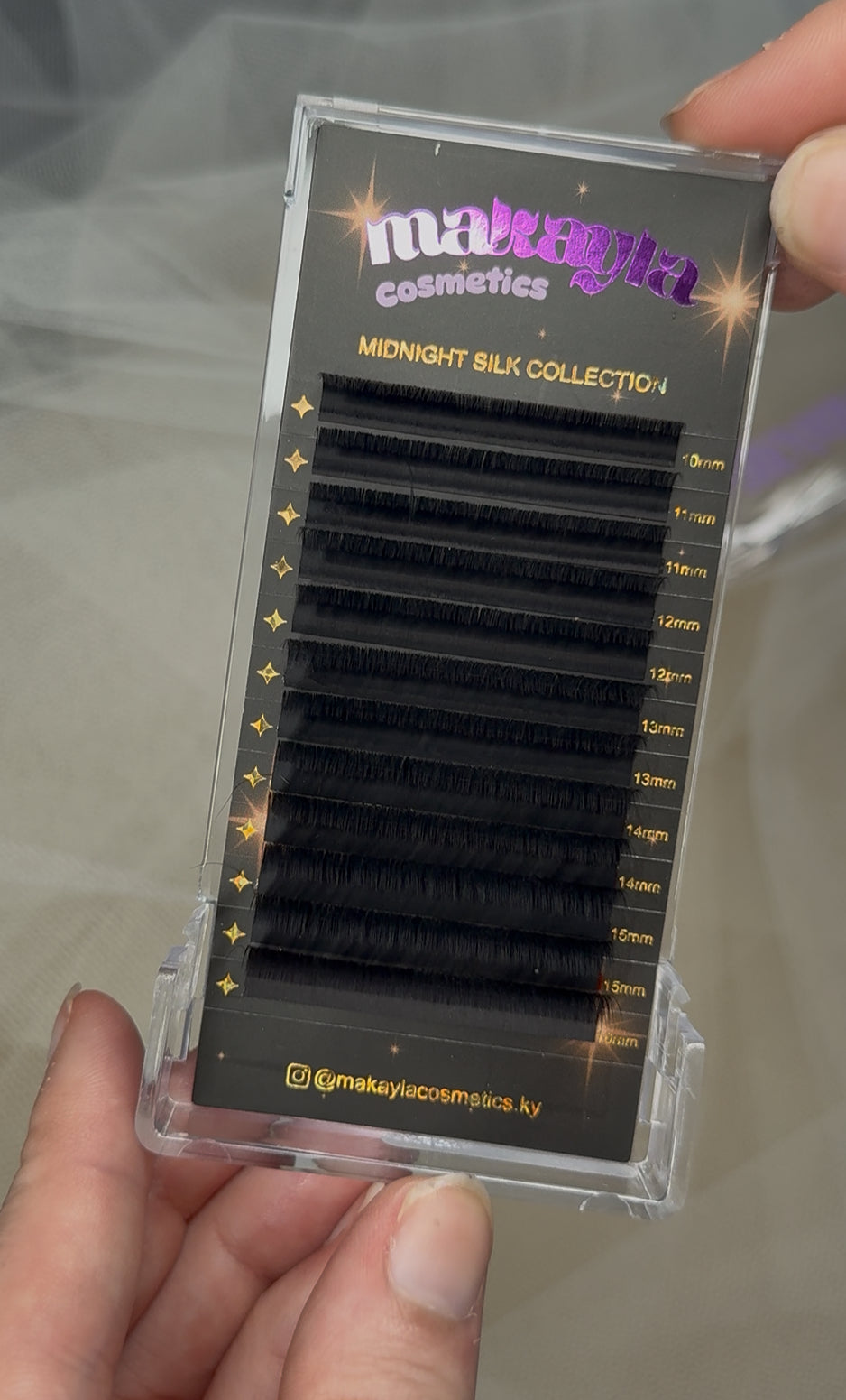Bring depth and drama to your sets with our Midnight Silk Lash Trays. Crafted for lash artists who love bold, seamless looks, these lashes are jet-black, soft, and ultra-fluffy β€” giving every set a luxurious finish that clients can’t resist.